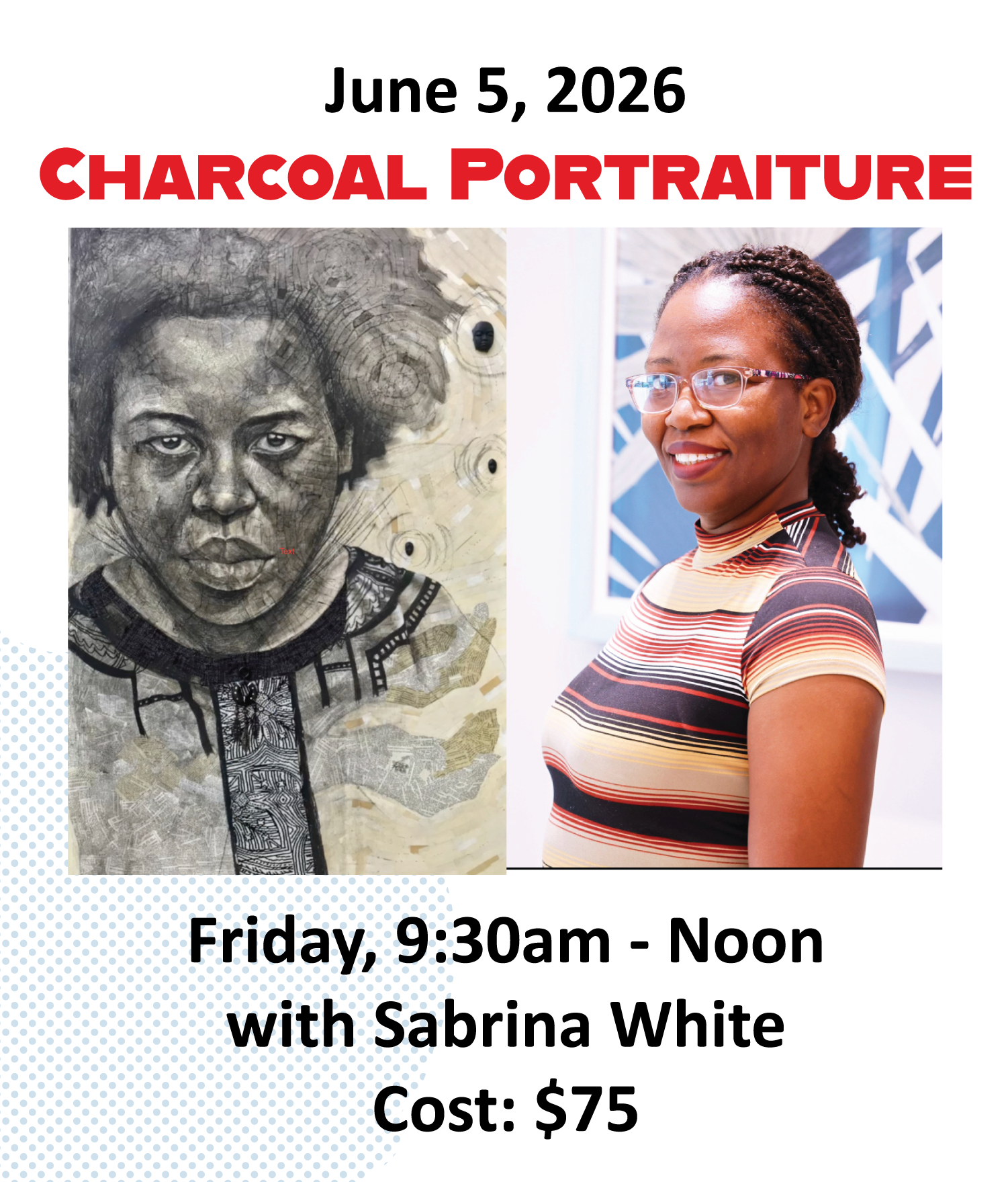 Join professional artist and experienced educator Sabrina White for a hands-on introduction to charcoal portraiture. In this technique-driven workshop, participants will learn foundational skills including facial proportions, value (lights and darks), blending, and layering techniques.
