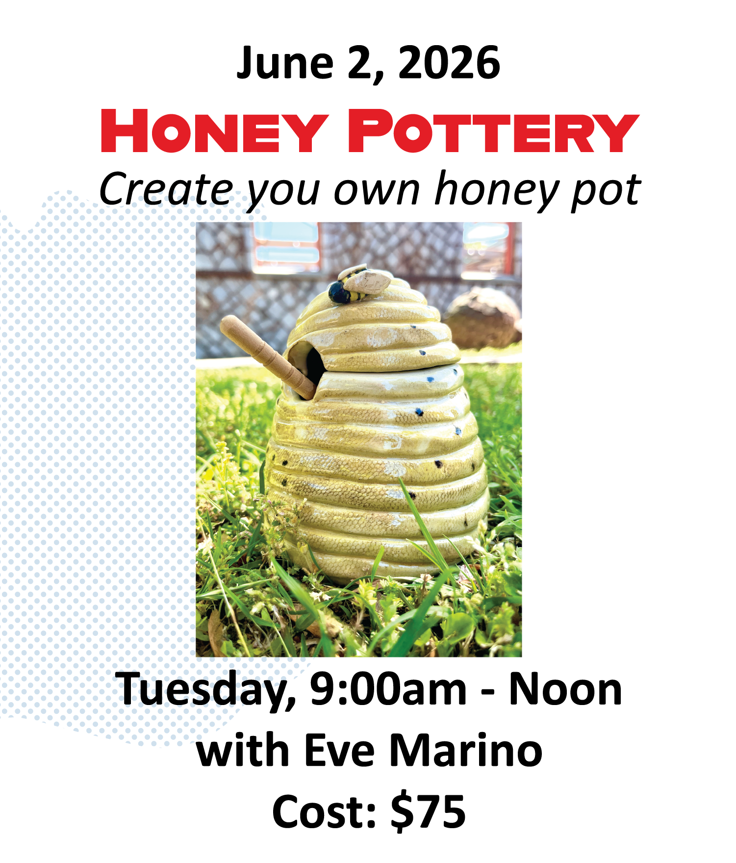 Create your own functional and beautiful clay honey pot in this hands-on ceramics workshop! Perfect for all skill levels, participants will learn how to construct a honey pot using the coil-building method, with the option for experienced potters to work on the pottery wheel.