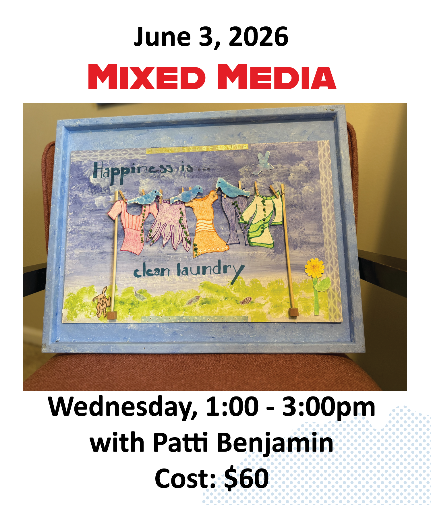Unleash your creativity in this fun, beginner-friendly mixed media workshop led by a passionate multi-media artist. Participants will be guided through creating a simple, decorative art piece perfect for the laundry room using a variety of materials like paper, stencils, stamps, and embellishments.