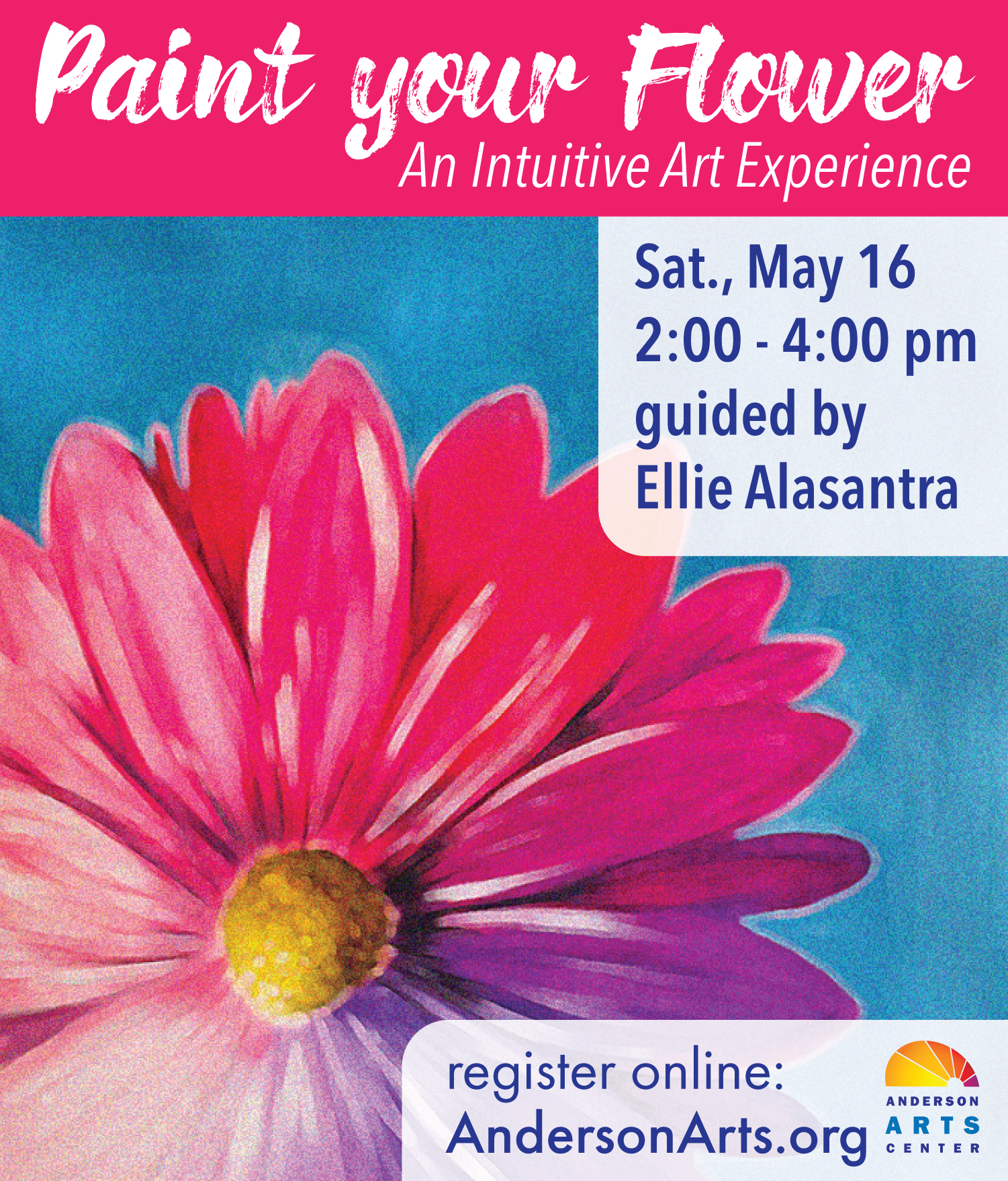 They say that April showers bring May flowers. So that’s the theme for our intuitive art class in May… “Paint your Flower”