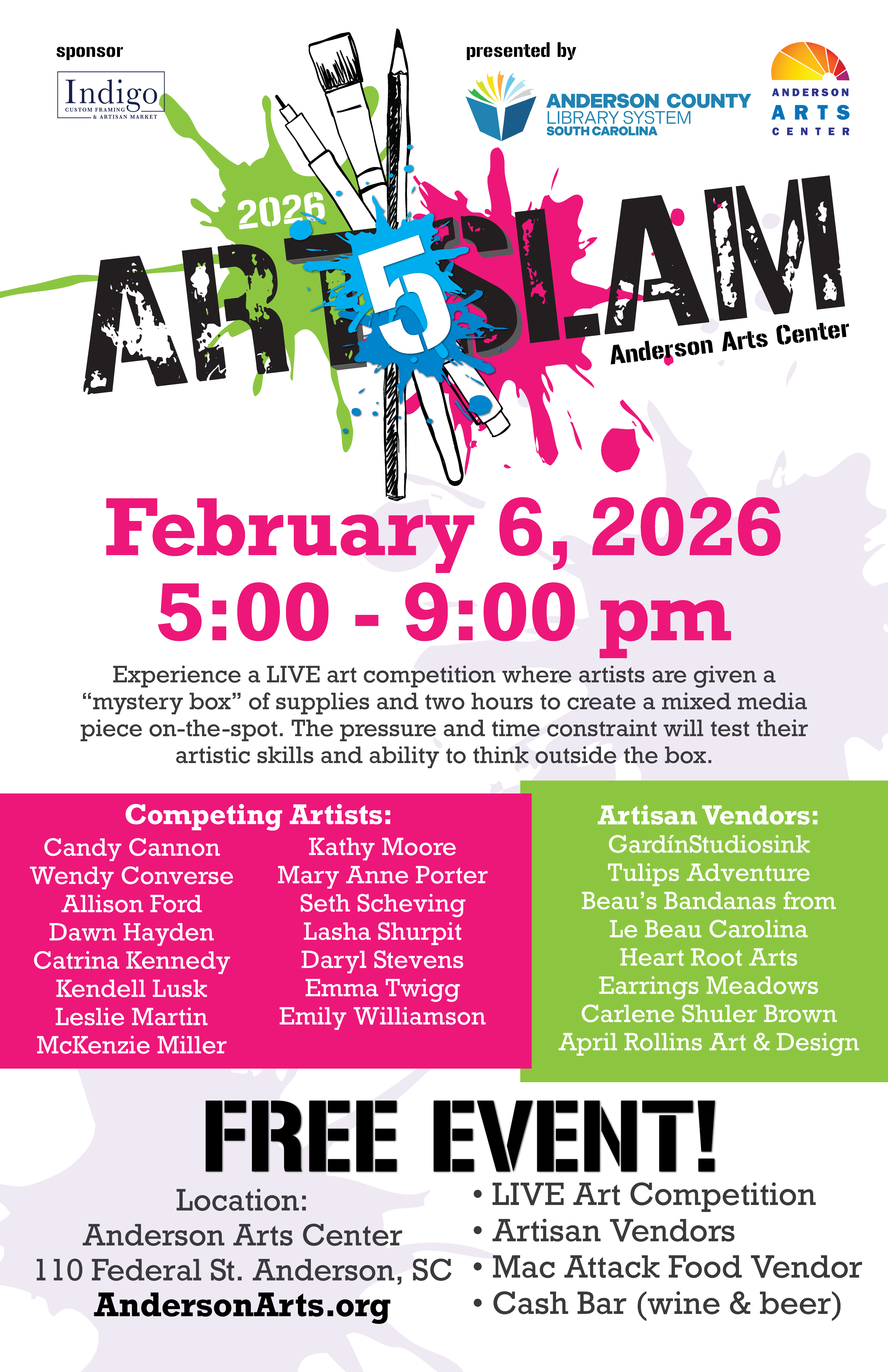 At the Anderson Arts Center, we offer vital arts resources for all in Anderson County. Help us keep the arts accessible to our community and beyond!